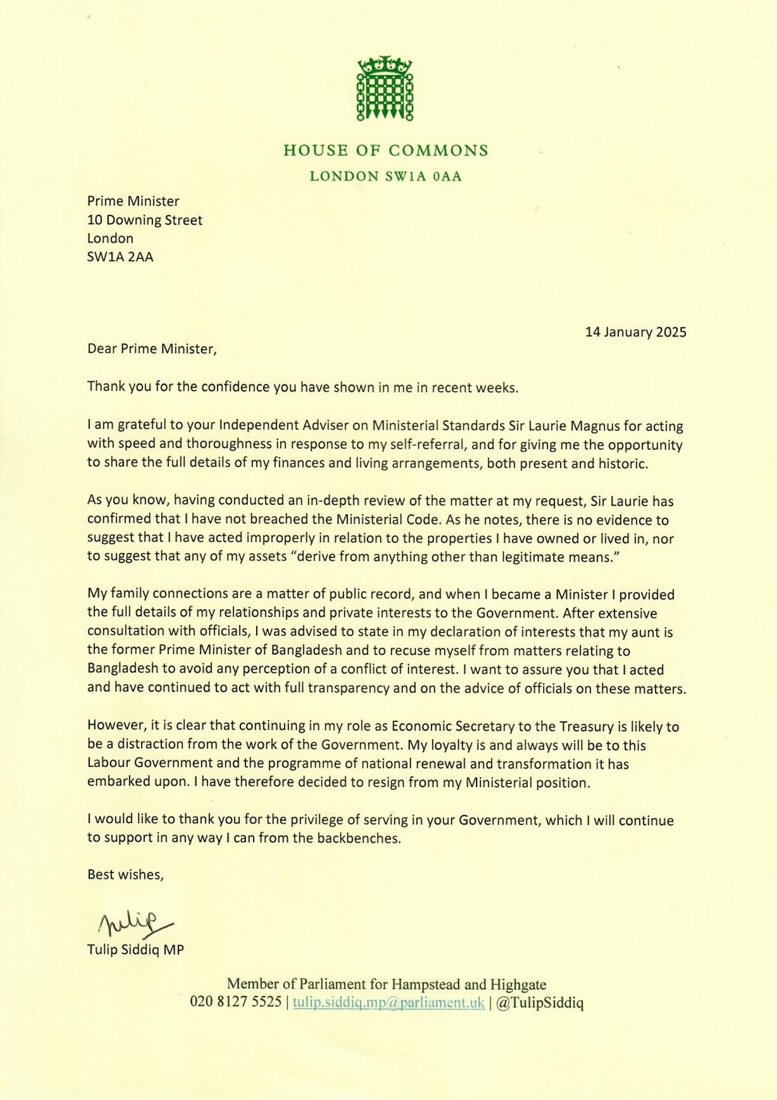 Tulip Siddiq Resign