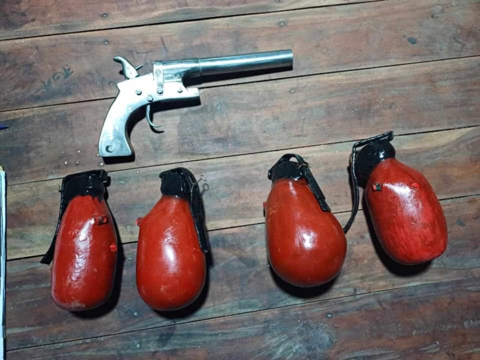 উদ্ধারকৃত পিস্তল ও বোমা