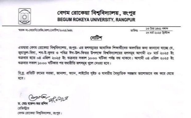 বিশ্ববিদ্যালয়ের রেজিস্টার ড. মোঃ হারুন-অর রশিদ স্বাক্ষরিত এ নোটিশ