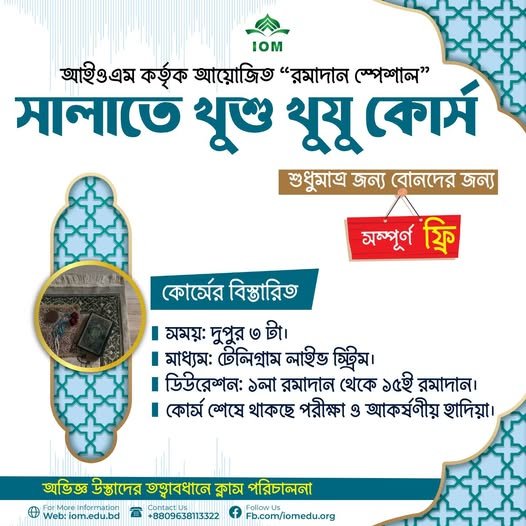 সালাতে খুশু খুযু কোর্স মেয়েদের জন্য আই ও এম এর আয়োজন