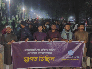 শেখ হাসিনার ফাঁসির রায়কে স্বাগত জানিয়ে জাবি ছাত্রশিবিরের মিছিল