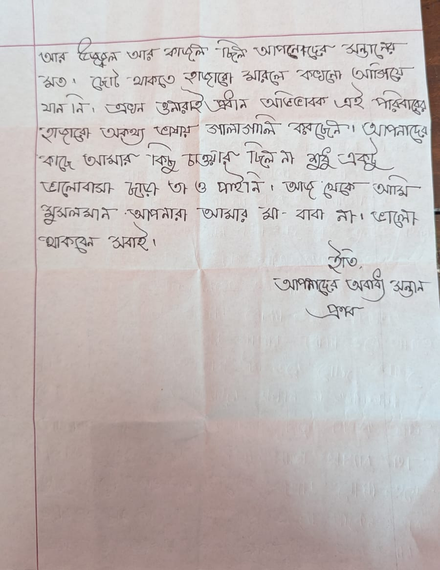 ২০ আগস্ট ২০২৫ তারিখে বোয়ালিয়া থানায় দায়েরকৃত জিডিতে (নং-১৪৬৫) তিনি নিজেই উল্লেখ করেছিলেন যে ধর্মান্তরের কারণে পিতা-মাতা ও স্বজনরা তাকে শারীরিক ও মানসিক নির্যাতন করছে। আদালতে হাজির হওয়ার সময়ও তিনি সুস্থ ও স্বেচ্ছায় ইসলাম গ্রহণের বিষয়টি জানান এবং নিজ জিম্মায় থাকার ইচ্ছা প্রকাশ করেন। আদালত তা অনুমোদন দিলেও নিরাপত্তার অজুহাতে পরিবার তাকে সঙ্গে নিয়ে যায়।