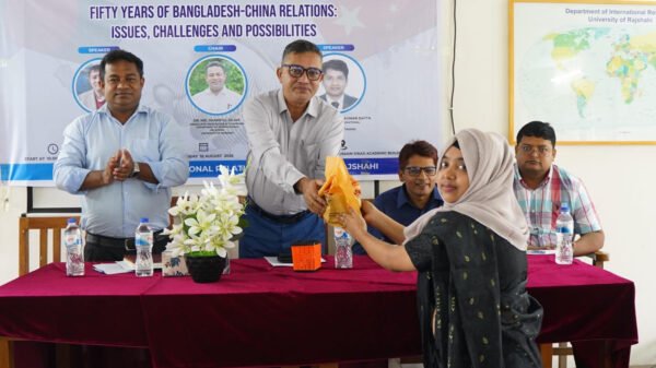রাজশাহী বিশ্ববিদ্যালয়ে বাংলাদেশ-চীন সম্পর্কের পঞ্চাশ বছর পূর্তিকে কেন্দ্র করে সমস্যা, চ্যালেঞ্জ ও সম্ভাবনা নিয়ে সেমিনার অনুষ্ঠিত হয়েছে। সোমবার (১১ আগস্ট) সকাল ১০টায় আন্তর্জাতিক সম্পর্ক বিভাগের আয়োজনে বিশ্ববিদ্যালয়ের সৈয়দ ইসমাইল হোসেন
