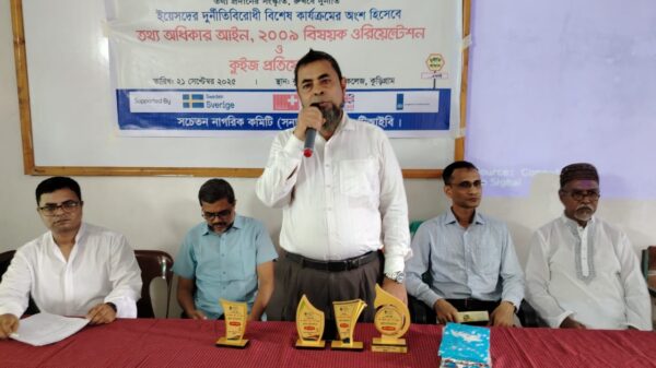 সনাক আয়োজিত কর্মসূচিতে ১৫০ শিক্ষার্থী অংশগ্রহণ, আলোচনায় দুর্নীতি প্রতিরোধে আইনের গুরুত্ব কুড়িগ্রাম সরকারি কলেজের প্রায় ১৫০ শিক্ষার্থীকে তথ্য অধিকার আইন, ২০০৯ বিষয়ে ধারণা দিয়েছে সচেতন নাগরিক কমিটি (সনাক)। আজ সকালে