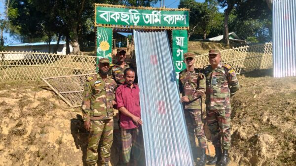 ২৬ নভেম্বর ২০২৫, বুধবার রাঙ্গামাটি নানিয়ারচর সেনা জোন (১৭ ই বেংগল) কর্তৃক ‘সম্প্রীতি ও উন্নয়ন প্রকল্প’ এর আওতায় নানিয়ারচর জোনের আওতাধীন বাকছড়ি এলাকার বাসিন্দার সমেন্ট চাকমার বসতঘর আগুনে পুড়ে যাওয়ায়