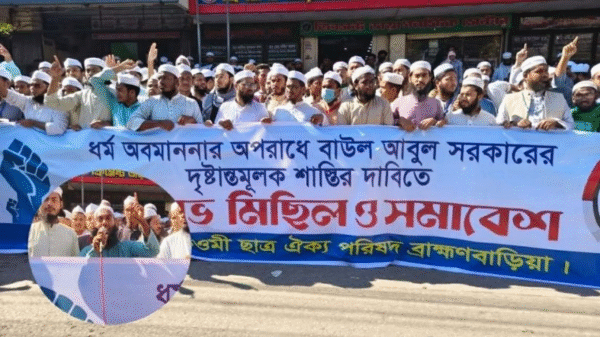 ব্রাহ্মণবাড়িয়ায় বৃহস্পতিবার (২৭ নভেম্বর) হেফাজতে ইসলাম নেতারা বাউল শিল্পী আবুল সরকার ও কবি-দার্শনিক ফরহাদ মজহারকে “মুরতাদ” হিসেবে ঘোষণা করেছেন। সমাবেশে দৃষ্টান্তমূলক শাস্তি, ধর্মীয় অপরাধে মৃত্যুদণ্ড এবং দেশের মাজারে অশ্লীল গান-বাজনা