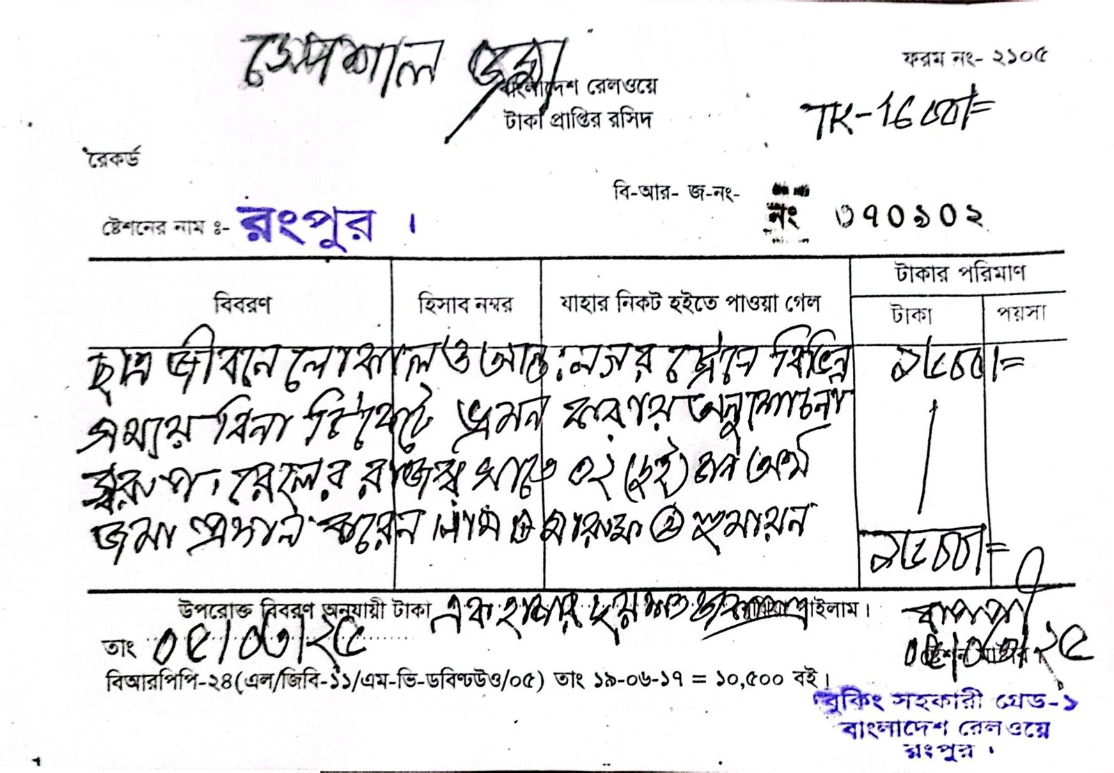 স্বপ্রণোদিত হয়ে ১৬০০ টাকা রেলওয়ের ভাড়া পরিশোধ করলেন দুই শিক্ষার্থী
