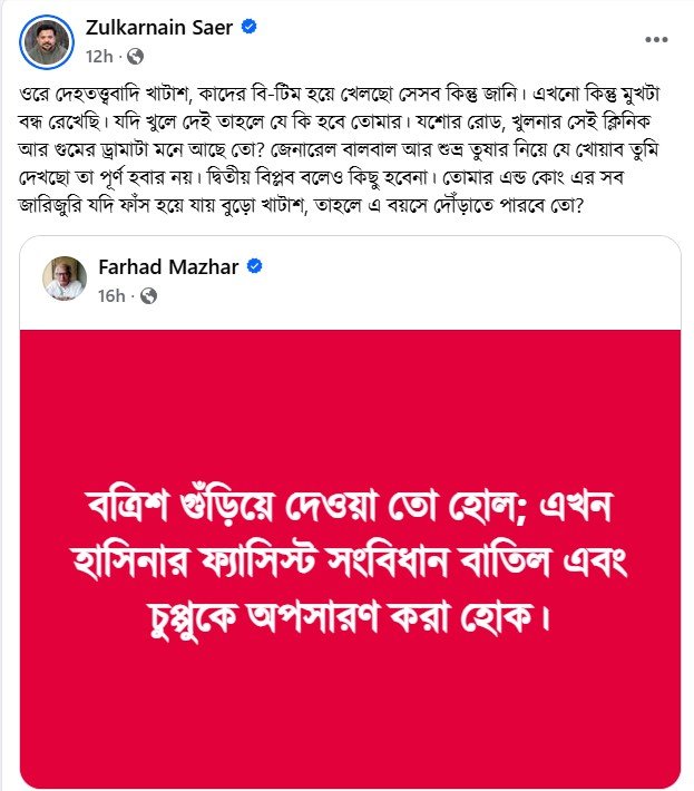 জুলকারনাইন সায়ের এর ফেসবুক পোস্ট